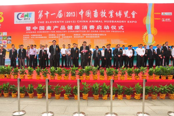 19日上午,在展館廣場舉行了盛大的畜牧業(yè)博覽會開幕式暨中國禽產(chǎn)品健康消費啟動儀式。出席開幕式的有農(nóng)業(yè)部首席獸醫(yī)師于康震、農(nóng)業(yè)部畜牧業(yè)司司長王智才、農(nóng)業(yè)部畜牧業(yè)司副司長、中國畜牧業(yè)協(xié)會副會長王宗禮、畜牧業(yè)協(xié)會常務(wù)副會長、全國畜牧總站站長、中國飼料工業(yè)協(xié)會秘書長李希榮、全國畜牧總站副站長、書記、中國畜牧業(yè)協(xié)會秘書長何新天等行業(yè)領(lǐng)導(dǎo)及國內(nèi)外嘉賓、畜牧龍頭企業(yè)代表、參展企業(yè)代表數(shù)千人。鐵騎力士集團總裁馮光德作為畜牧業(yè)協(xié)會副會長應(yīng)邀出席了開幕式。