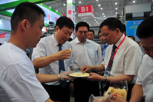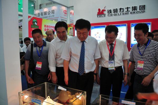 在隨后的巡館中,農(nóng)業(yè)部首席獸醫(yī)師于康震、畜牧業(yè)司司長王智才、全國畜牧總站站長李希榮等行業(yè)領(lǐng)導(dǎo)專門來到鐵騎力士集團展位,了解集團的發(fā)展情況,并饒有興致地參觀了展示的圣迪樂村褐殼、粉殼種雞苗和雞蛋等產(chǎn)品,工作人員端上了現(xiàn)場煮熟的雞蛋,領(lǐng)導(dǎo)們品嘗后連連點頭農(nóng)業(yè)部首席獸醫(yī)師于康震豎起了大拇指。本次展會旨在提振中國畜產(chǎn)品健康消費,公司健壯活潑的雞苗以及圣迪樂雞蛋的現(xiàn)場品鑒,為展會增色不少。