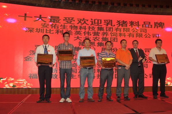 27日晚頒獎盛典在開元名都五星級酒店隆重舉行,本次評選經過網上公開投票、專家組綜合評審,共選出十大新銳乳豬料品牌、十大最具潛力乳豬料品牌、規模養殖場喜愛品牌,以及“中國十大最受歡迎乳豬料品牌”。頒獎臺上,由法國樂斯福集團亞太區總裁榮維樂先生揭曉最終大獎,鐵騎力士乳豬料眾望所歸,以卓越的產品質量、廣泛的市場影響力、顯著的飼喂效果、深得人心的口碑最終獲得十大最受歡迎乳豬料品牌。