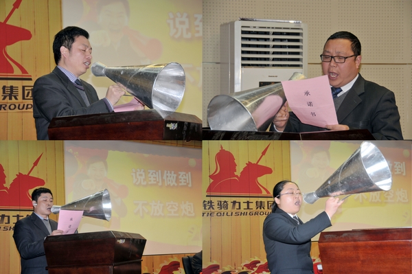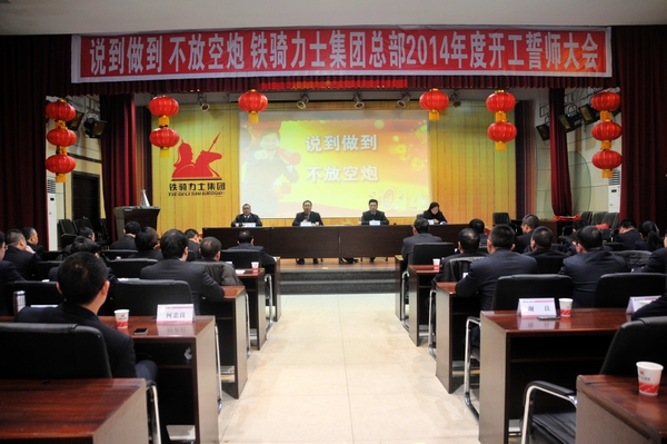 隨著一聲聲莊嚴(yán)的承諾,2月11日,鐵騎力士集團(tuán)總部2014年度開(kāi)工誓師大會(huì)在綿陽(yáng)總部學(xué)術(shù)報(bào)告廳舉行。董事長(zhǎng)雷文勇、總裁馮光德、執(zhí)行總裁李全、副董事長(zhǎng)楊秋平及總部全體員工參加了大會(huì)。