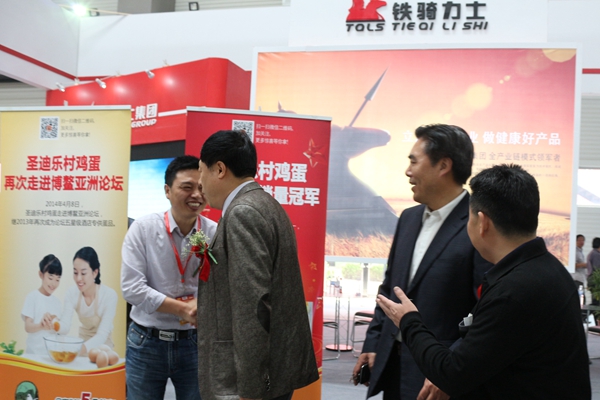 鐵騎力士展廳分為飼料、牧業、食品三大展示區,向來訪客商展示了鴨料、雞料、豬料、魚料產品、圣迪樂雞蛋以及種豬、種雞的發展情況。當參觀者了解到鐵騎力士目前在貴州1200頭原種豬場基礎上又新建了二期工程,存欄種豬將達4800頭,圣迪樂村已建有羅曼祖代蛋種雞中國唯一示范場,且圣迪樂村雞蛋走上亞信峰會嘉賓政要的餐桌等好消息時,不由得豎起大拇指。