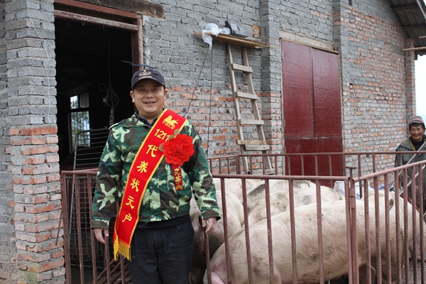 三臺縣塔山鎮村民熊瑞洪2014年9月3日開始與鐵騎力士牧業科技有限公司合作,參與“1211”生豬養殖模式,改造豬舍1200平方米,進行天府肉豬的標準化養殖,引進豬苗701頭。今年1月13日出欄肥豬133頭,預計2月中旬全部出欄,可實現單批毛利潤10萬余元。筆者看到圈外的墻上醒目地掛著大紅標語:“跟著鐵騎代養走,一年十萬就到手”,而熊瑞洪則注視著膘肥體壯的肥豬滿心歡喜。