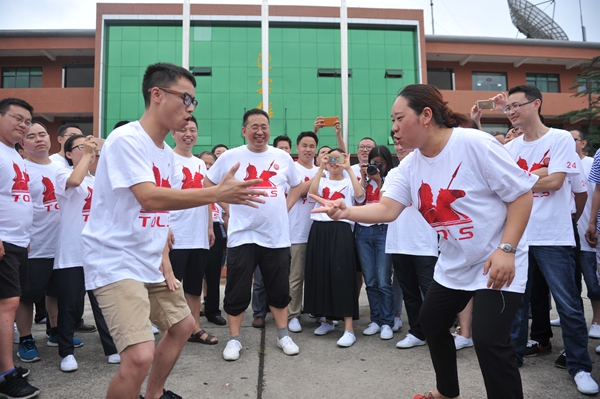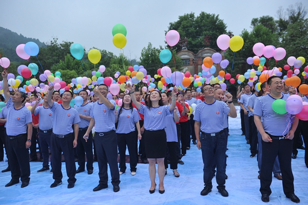 為期5天的廠慶活動可謂豐富多彩,有趣的是拔河、剪刀石頭布等活動,具有特殊意義的是升國旗、放飛夢想儀式、鐵騎工匠表彰大會等活動。放飛夢想活動現場,員工代表們激情澎湃,把各自對生活和工作的美好愿望、對鐵騎力士的夢想和期待,寫在氣球上,帶到廣場上集體放飛——五顏六色的氣球,帶著鐵騎人的夢想,飛向遠方,飛向未來;在滿天彩球的映襯下,代表們紛紛把成長的印記留在了青春墻上。