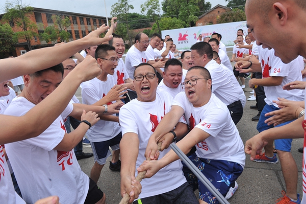 太極演練則場面壯觀,意味深長——寬闊的廣場上,表演的員工身穿太極服,伴隨著悠揚的太極樂曲,一招一式都剛柔相濟、進退有度。此外,集團飼料、牧業、食品、總部四支太極代表隊還進行了現場PK賽,吸引了眾多員工的熱情參與。最終,總部獲得團體第一名。