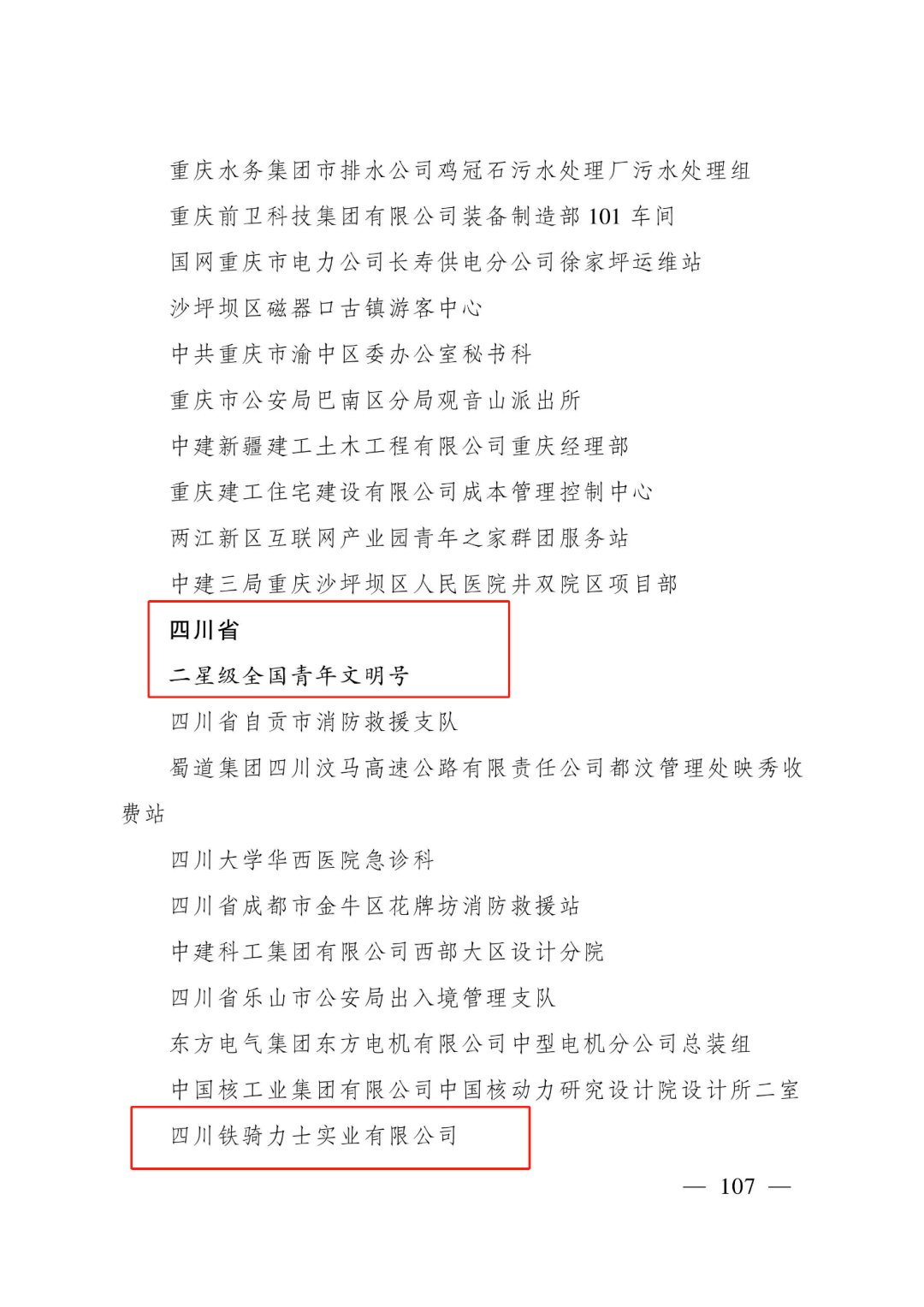近日,共青團(tuán)中央等23家全國創(chuàng)建青年文明號活動(dòng)組委會(huì)成員單位聯(lián)合印發(fā)《關(guān)于命名第21屆全國青年文明號并進(jìn)行星級認(rèn)定的決定》,命名1932個(gè)集體為“第21屆全國青年文明號”。其中,鐵騎力士被認(rèn)定為“二星級全國青年文明號”,再添“國字頭”榮譽(yù)。